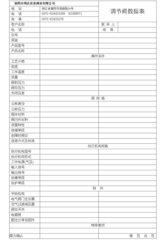 附录Ⅺ调节阀数据表